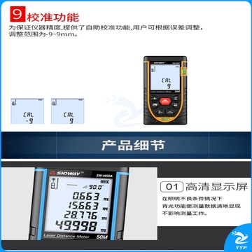 深达威激光测距仪手持式高精准红外线量房仪测量仪电子尺激光尺50-120米 SW-M50A锂电/50米+腰包语音 教学仪器