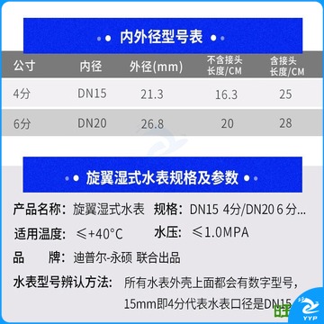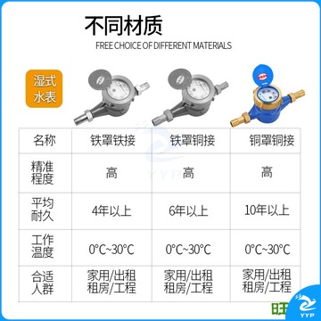 旺泉 家用水表自来冷水表旋翼数字冷 DN20六分 直通 DN15 水文仪器