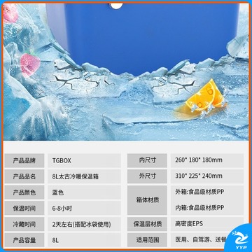 太古冷链/TGBOX 太古冷链保温箱家用冷藏箱8L医药用品血液运输箱2到8度胰岛冷藏盒母乳保鲜外卖钓鱼箱 8升带温显+8冰袋 安全用仪器