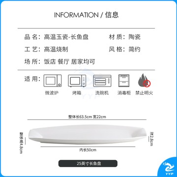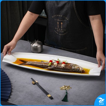 中徽新星 新珂双耳鱼盘大号超大长条带鱼盘酒店饭店长型 食品烘焙设备 安全用仪器