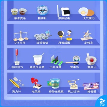 儿童科学实验套装玩具小学生科技发明小制作器材手工材料包幼儿园 教学仪器科教版-幼儿园中班【16套】
