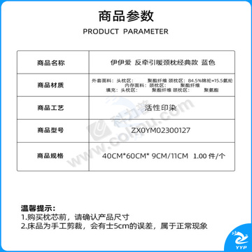 伊伊爱 反牵引暖颈枕经典款 ZX0YM02300127 40*60*9/11cm (蓝色) (袋)