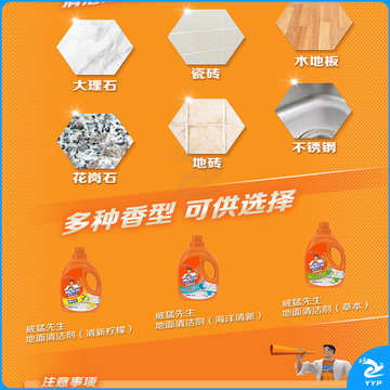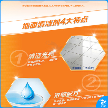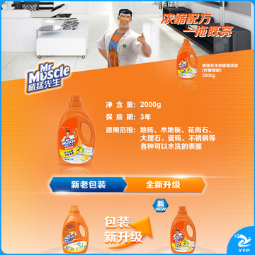 威猛先生(Mr Muscle) 地板清洁剂 2kg 柠檬香 地板砖清洁剂 瓷砖除菌除垢 浓缩配方