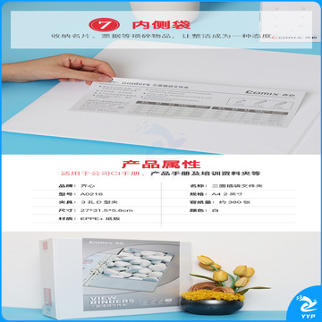 齐心(COMIX)A0216 A4 2寸3孔 美式三面插袋D型 档案夹 白色