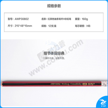 晨光 M&G 红黑色抽条笔杆HB铅笔 AWP30802 12支/盒 (大包装)