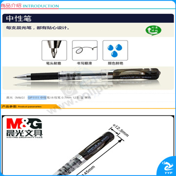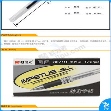 晨光 M&G 拔帽中性笔 GP1111 0.7mm (黑色) 12支/盒 (替芯 MG-6128)(大包装)