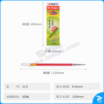 晨光 M&G 中性替芯 G-5 0.5mm (红色) 20支/盒 (适用于AGP89501、AGP87902、AGPK3507、GP1008、GP1163、GP1165、GP1350、K35型号中性笔)(大包装)