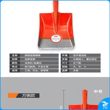 1101655910EA 冰禹 BY-001 清洁优质铁锹 大号方型锹(含1.2m柄)+3双手套