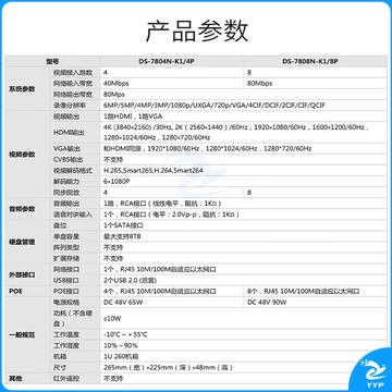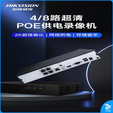 海康威视网络硬盘录像机监控4路POE网线供电NVR