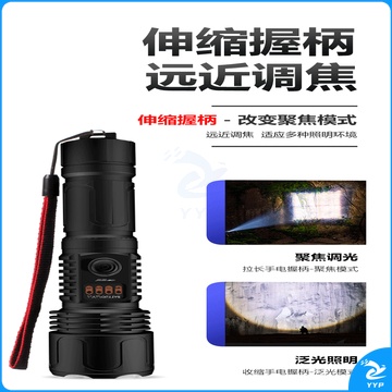 康铭强光手电筒变焦超亮远射SOS救援充电式探照灯应急户外家用KM-T62