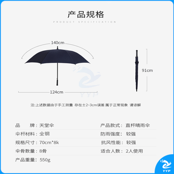 天堂 雨伞半自动男士商务伞超大伞面长柄伞直柄雨伞 藏青 70cm*8骨