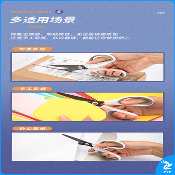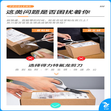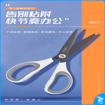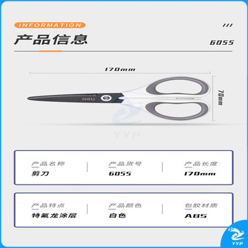 得力(deli)170mm特氟龙材质防粘不锈钢剪刀 白色6055