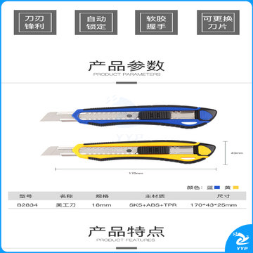 1100203715EA 齐心 B2834 美工刀 170*43*25mm 混色 12把/盒