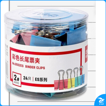 得力8552 彩色长尾夹2号41mm燕尾夹 凤尾夹 票据夹 票夹 夹子(24只1筒)