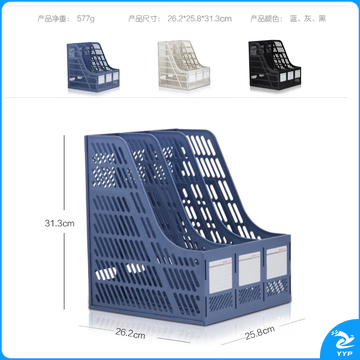 得力 文件框9847三联 塑料文件架 资料架文件栏 文件筐 收纳架 三联灰色