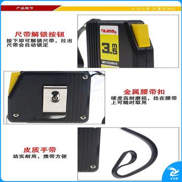 品牌:日本田岛; 尺寸:尺带3.5M*13mm; 材质:尺带进口SK85钢,弹簧进口SK85钢,尺壳ABS树脂,JIS1级,0点补正移动尺爪,另配手带,测量精密,简单,方便; 包装规格:6把/盒/60把/箱;