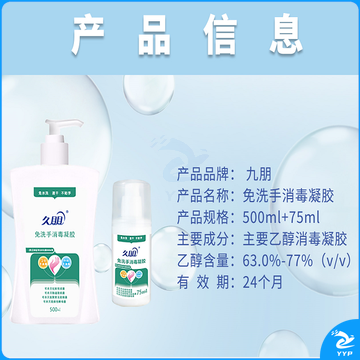久朋 500ml/瓶+75ml便携装免洗手消毒凝胶 手消毒液 洗手液