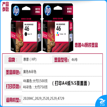 惠普(HP)46墨盒 适用HP 2029/2020/2520/2529hc CZ637AA 46黑色/彩色/单只