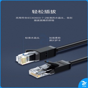 绿联 六类网线 CAT6类千兆八芯双绞非屏蔽跳线8芯 电脑宽带家用工程装修成品监控网络连接线 黑色2米