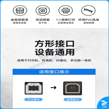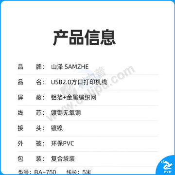 山泽 SAMZHE USB打印机线 USB2.0方口连接线 公B公 AM/BM BA-750 5米