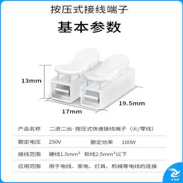 按压对接快速接线端子 电线连接器 CH2二位式对接软硬导线通用100只/组