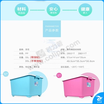茶花 28011T 49.5*35.3*30.6cm 正方收纳箱 3个/组颜色随机1组装 正方收纳箱