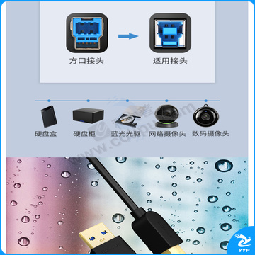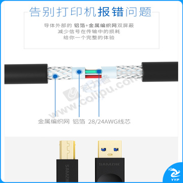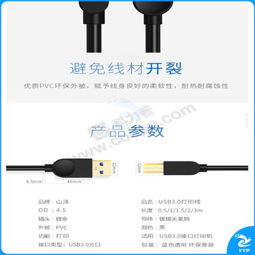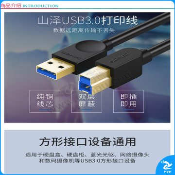 山泽 SAMZHE 高速USB3.0打印机数据线 公对公 AM/BM方口 移动硬盘盒连接线 SDY-05C 3米