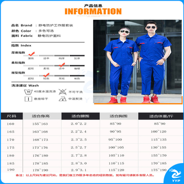 威特仕 夏季薄款短袖防静电工作服套装 上衣+裤子 彩色