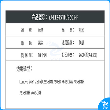 盈佳YJ LT2451H/2605黑粉 适用机型:Lenovo 2451 2605D 2655DN 7605D 7615DNA 7455DNF 7655DHF 7675DXF