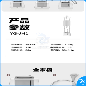 美的(Midea)智能蒸汽熨斗挂烫机烫斗熨衣机双杆手持熨烫机电熨斗YG-JH1精选推荐 YG-JH1
