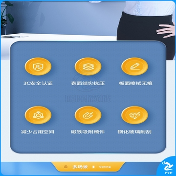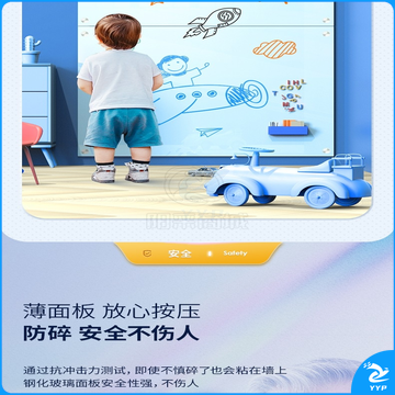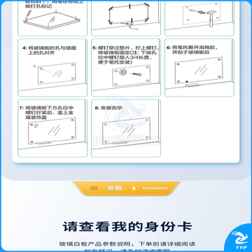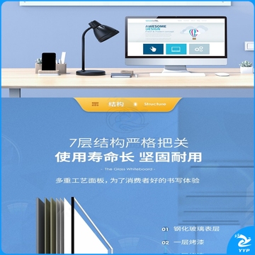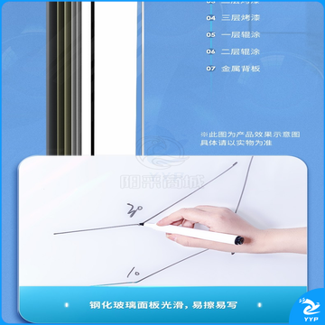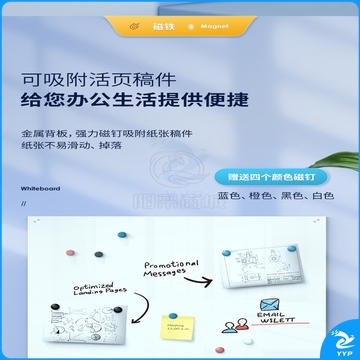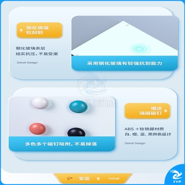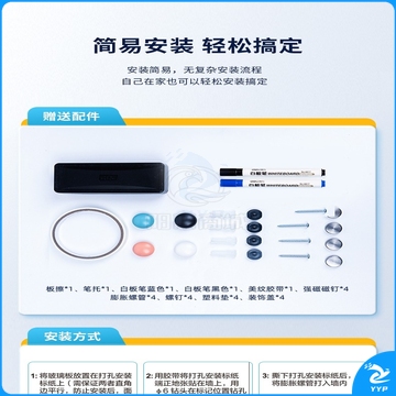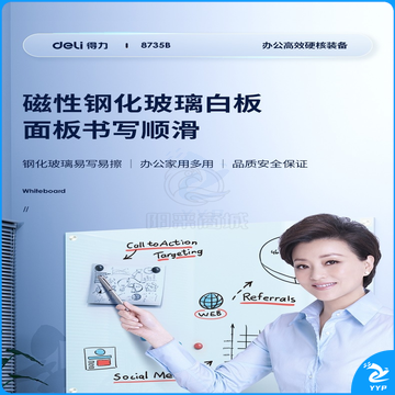 得力(deli)挂式白板90*60cm磁性钢化悬挂式玻璃白板办公会议写字板黑板 含白板擦 白板笔 磁钉8735B