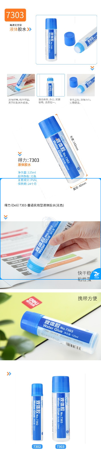 得力(deli) 144瓶/箱 125ml高粘度普通实用型液体胶水单瓶装办公用品7303