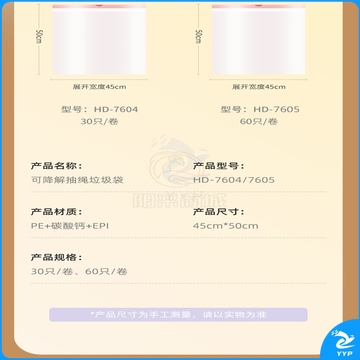 好媳妇(okaywife)手提式可降解抽绳垃圾袋厨房家用一次性宿舍办公室用防漏中号垃圾袋 【可降解】抽绳式1卷30只(45*50CM)