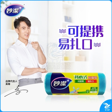 妙洁(MIAOJIE) 大号手提背心式加厚垃圾袋 蓝色 50*70cm13L20只