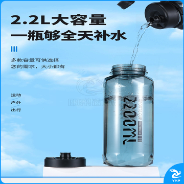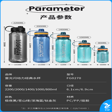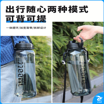 富光 大容量户外健身塑料杯便携背带运动水壶 (灰色-1000ML)