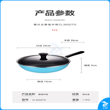 爱仕达 ASD 炒锅可视玻璃盖清新不粘涂层 雅逸新不粘炒锅 CL30Q2TG 30cm