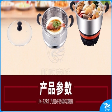 九阳(Joyoung) 电蒸锅 多功能家用电热锅304不锈钢配带蒸笼 JK-32R1/32CM【3L锅+5L蒸笼】