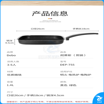 Debo 德铂柯蒂斯煎锅不粘锅24cm 黑色DEP-755
