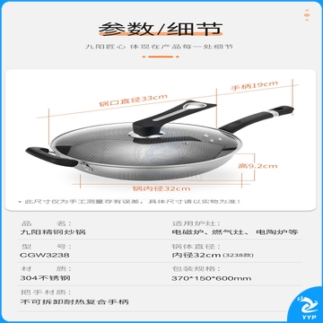 九阳(Joyoung) 不粘锅炒锅 家用304不锈钢炒菜锅 CGW3238【32cm-带盖 3-5人】