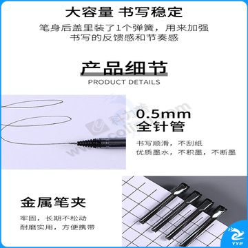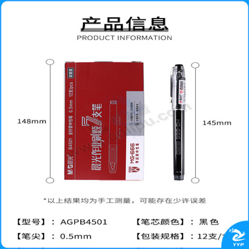 晨光 M&G MG666系列拔帽全针管中性笔 AGPB4501 0.5mm (黑色) 12支/盒 (替芯 4321)