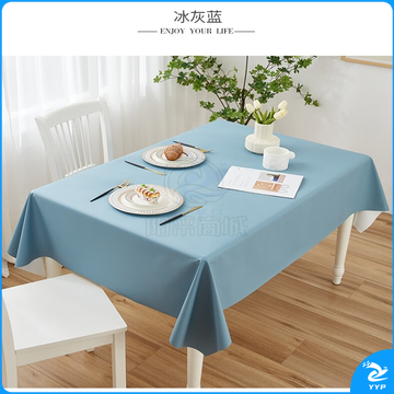 奶油风PU防水防油餐桌台布 (冰灰蓝90*140cm)