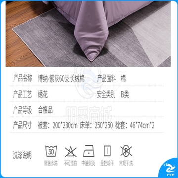 恒源祥 博纳 紫灰60支长绒棉 床上用品四件套200*230cm