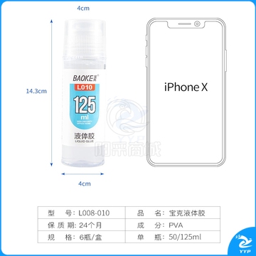 宝克(BAOKE)L010 125ml液体胶 学习办公通用胶水 6支装 办公用品