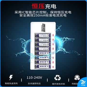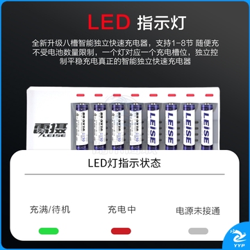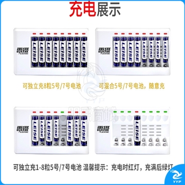 雷摄(LEISE) 728多槽位智能快速独立充电套装(配8节7号1150毫安充电电池+8槽充电器)玩具/鼠标键盘