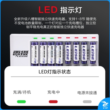雷摄(LEISE) 857多槽智能快速充电套装(配4节5号+4节7号充电电池+8槽充电器)适用:KTV麦克风/电动玩具