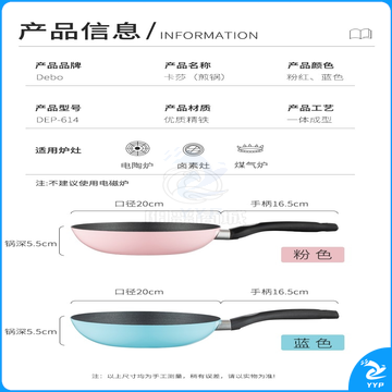 Debo 德铂平底锅不粘煎锅卡莎20cm 浅蓝色DEP-614