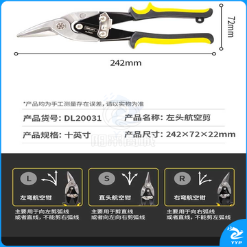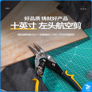 得力(deli) 60把/箱 55号高碳钢左头航空剪不锈钢板剪刀铁皮剪子250mmDL20031