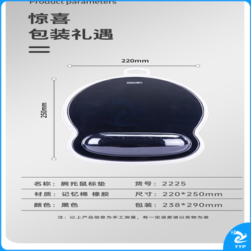 得力(deli)舒适记忆棉腕托鼠标垫 黑色2225