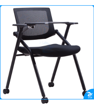 配件:四脚带轮,椅座可翻转折叠,椅背有一定角度倾仰,同时带一个写字板