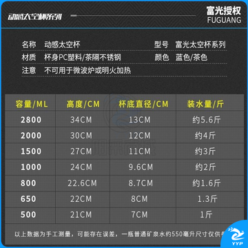 富光 大容量塑料杯户外运动夏季水壶 (蓝色1000ML【耐高温滤网款】)